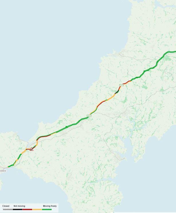 Slow traffic on A30 Westbound from A3047 (Camborne West, Camborne) to A3074 Nut Lane (Lelant).Likely due to holiday traffic on the move.