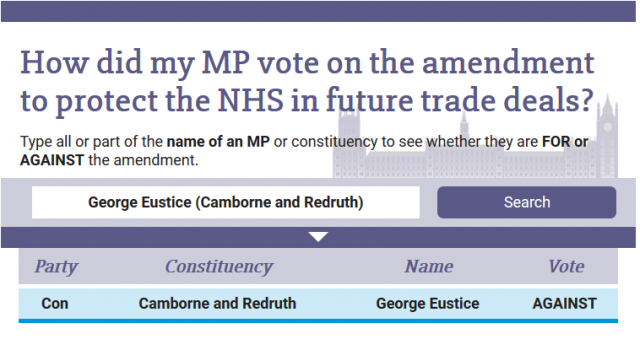 200721 | George Eustice AGAINST | How your MP voted on legal bid to protect the NHS in US trade deal