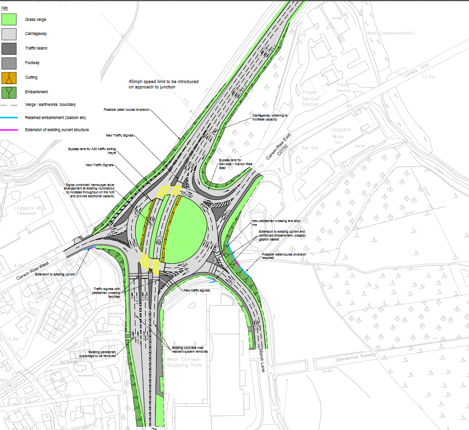 Cornwall Council are proposing to deliver the junction improvement at Loggans Moor