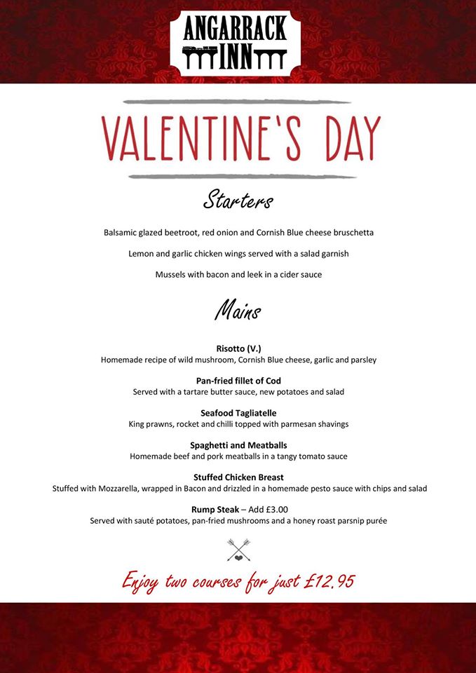 Angarrack Inn - This Valentines Day, say it with dinner, and treat...