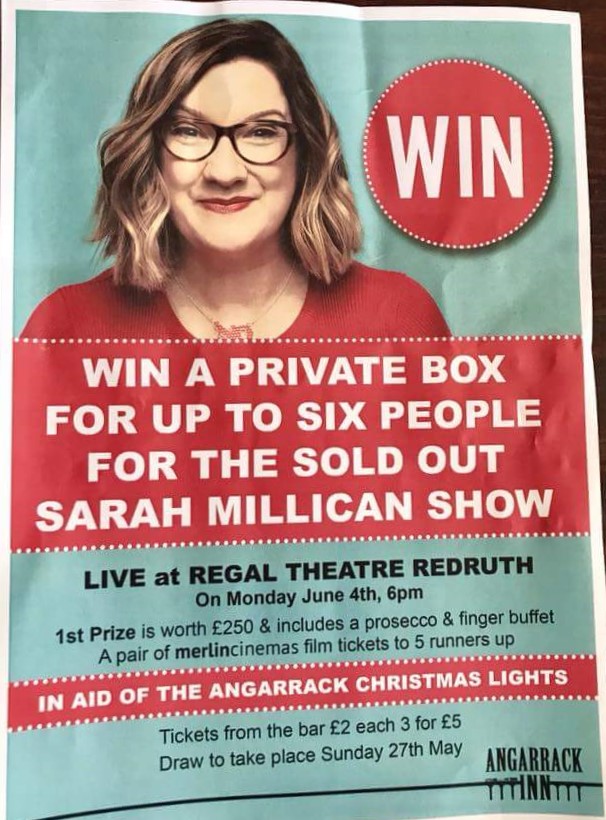 RAFFLE! Win Private box (worth £250) for up to 6 people for sold out Sarah Millican show at Redruth