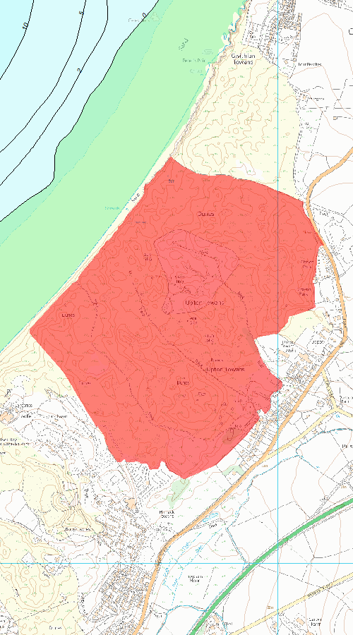 - Within the sand dunes at Upton Towans, bordered to the south-west by St Ives Bay Chalet and Caravan Park, to the north-east by Gwithian Towans, by Loggans Road to the south-east, and St Ives Bay to the north-west. NGR centred: SW5770140051.