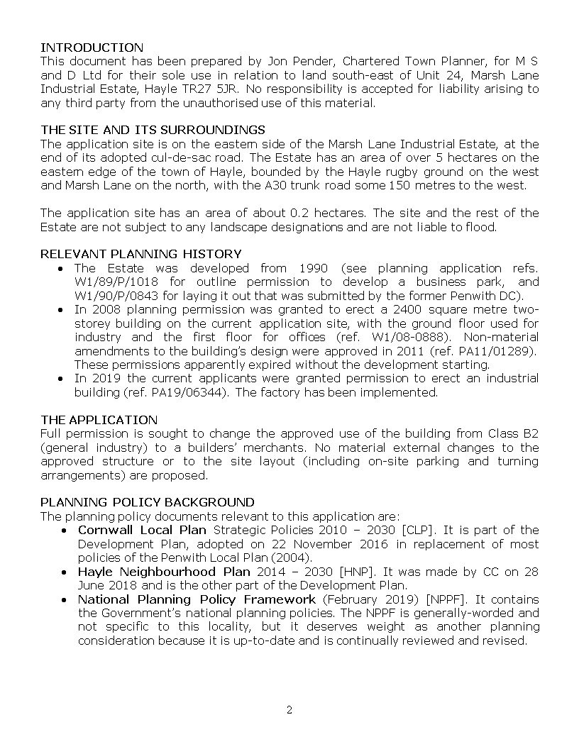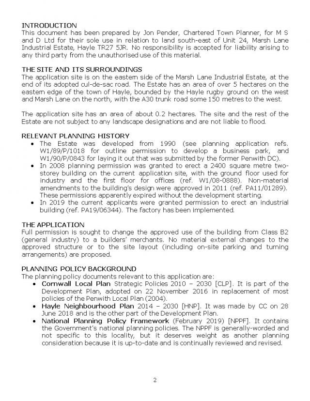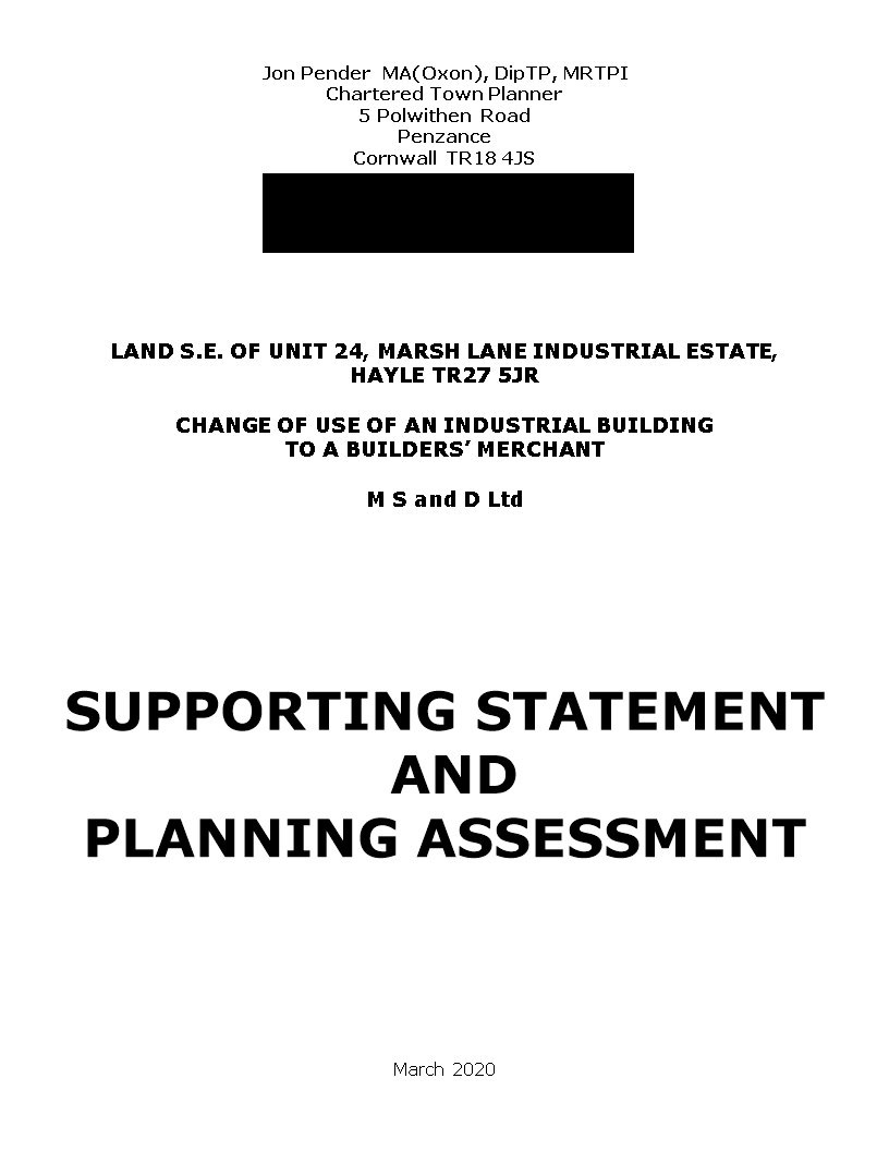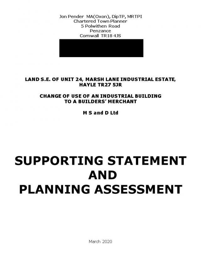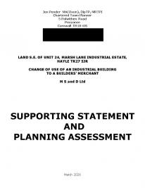 - PA20/03108 | Proposed change of use from industrial building to builders merchant | Supporting Statement Planning Assessment